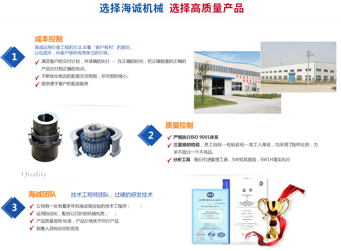 鎮(zhèn)江海誠機械制造有限公司 開辦于1991年,是開發(fā) 聯(lián)軸器 、 萬向聯(lián)軸器 、 鼓形齒式聯(lián)軸器 、 膜片聯(lián)軸器 的企業(yè)。歷經(jīng)二十多年的發(fā)展,已成為服務(wù)于鋼鐵冶金、石油、礦山、化工、生物、制藥等行業(yè)的大型企業(yè)集團,為客戶設(shè)計、制造各種非標產(chǎn)品、設(shè)備。 鎮(zhèn)江海誠機械制造有限公司總部位于中國傳動機械產(chǎn)業(yè)化基地之江蘇鎮(zhèn)江,鎮(zhèn)江海誠機械制造有限公司有總資產(chǎn)8000多萬元。鎮(zhèn)江海誠機械制造有限公司總占地面積...